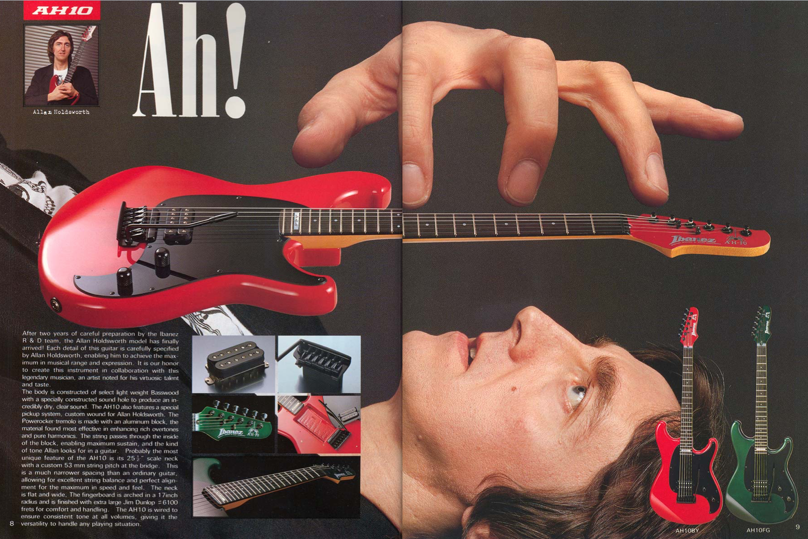 Mención especial merece la aparición en el catálogo del año 1985 del virtuoso británico Allan Holdworth y su modelo AH 10BY y AH10FG. Como se explica en el catálogo de 1986, en el año 1982 Holdsworth habría estado buscando que estuviese a la altura de su criterio como músico lo que lo llevó a contactarse con Roy Miyahara de Ibanez. Así, el equipo de investigación y desarrollo de Ibanez trabajó junto al músico británico lo que tuvo como resultado el modelo AH10 (al cual se añadiría en 1986 el AH20) Algunas características era su cuerpo de tilo (baswood), un mástil amplio y plano, un radio del diapasón de 17 pulgadas, escala 25 ½ y un puente customizado con un espaciado entre cuerdas más reducido, un Powerocker tremolo y un humbucker customizado o personalizado para Holdsworth.
