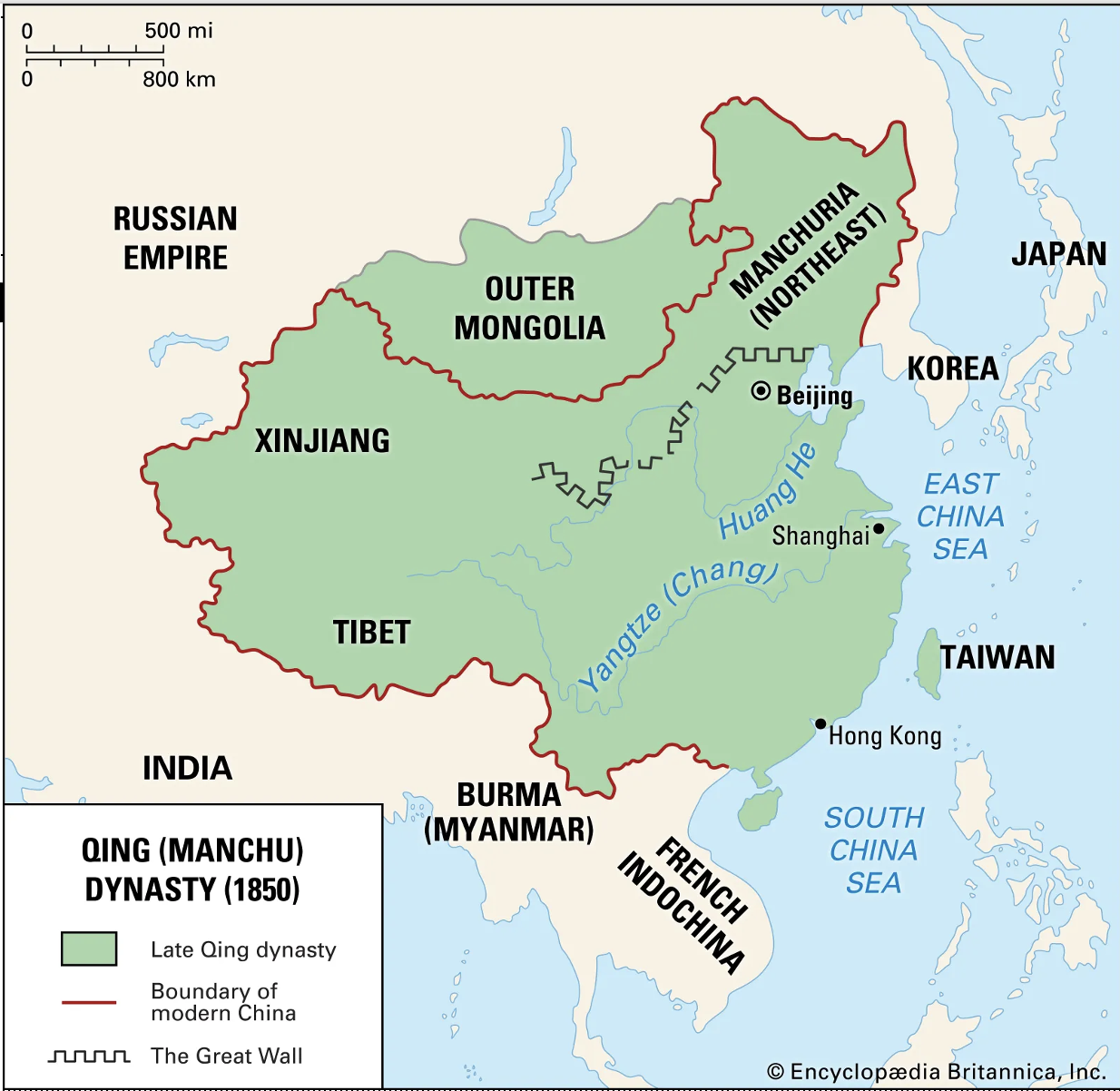 Ahora bien, las víctimas de esta humillación fueron, principalmente, los miembros del imperio Qing (1644-1911), pero sucede que estos no eran chinos, sino que manchúes quienes, a su vez, habían puesto fin a la dinastía Ming de origen chino (1368-1644), lo que significó que la etnia manchú se impusiera a la mayoría han.