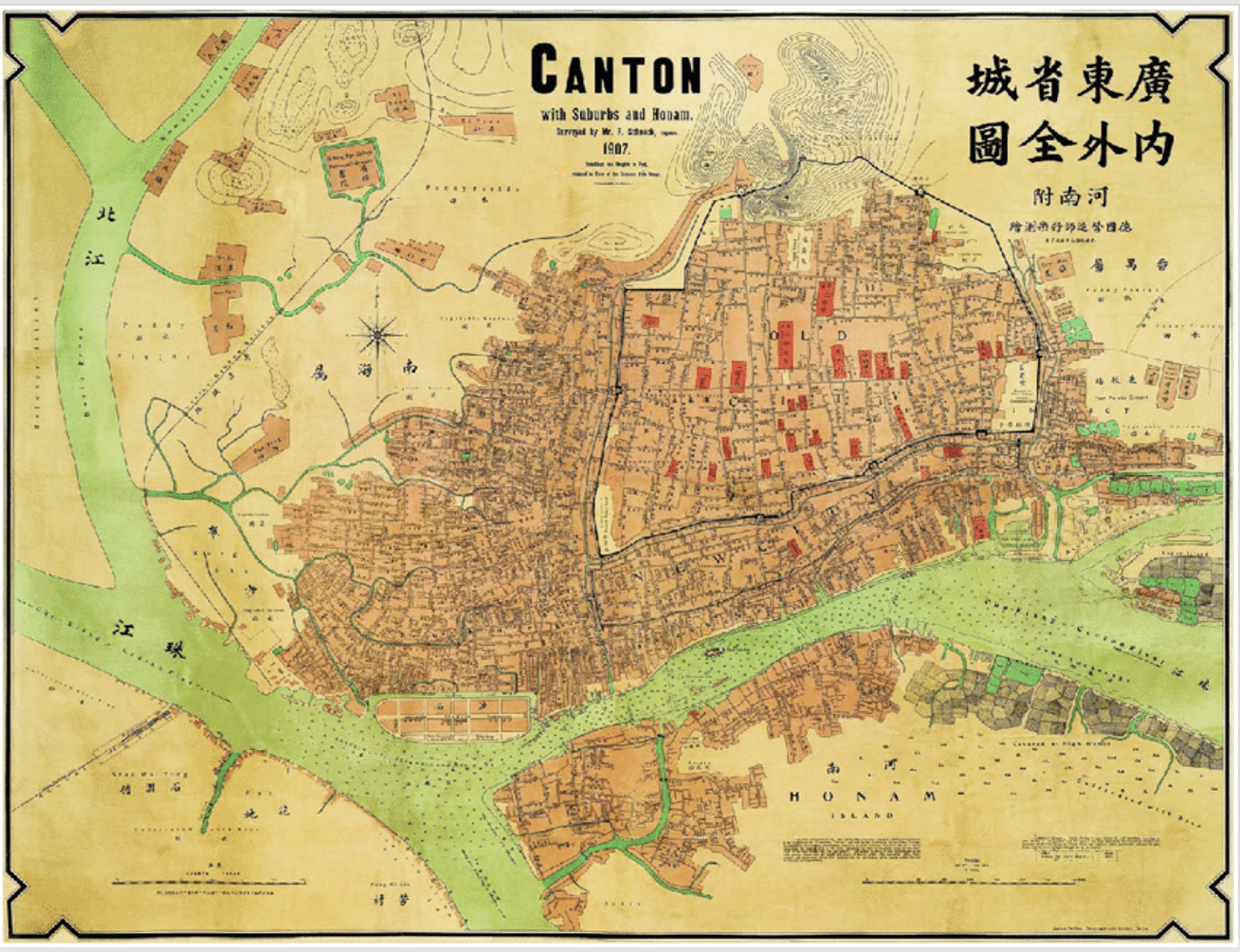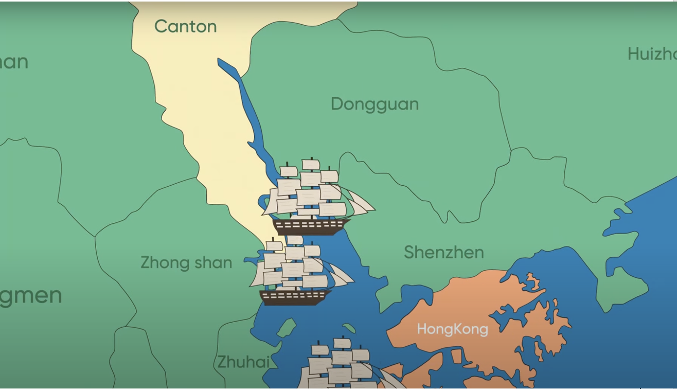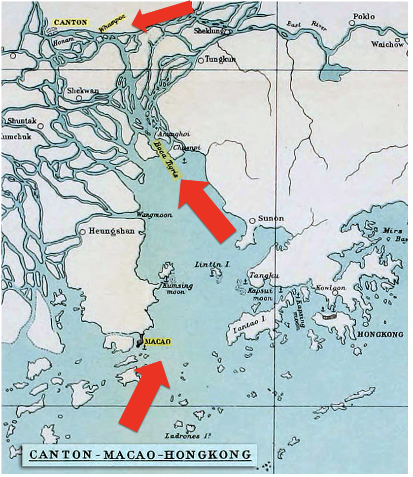 Como se señaló anteriormente, el comercio con China estaba limitado a una localidad específica: Cantón (Guangzhou). Esta última se encontraba en el sur de China y estaba hacia el interior del territorio, por lo que los comerciantes debían comerciar por el río de las Perlas para desembarcar en Whampoa (Huangpu). Como la profundidad era menor se debía continuar en embarcaciones más pequeñas. Como explica Spence, se prohibió que los extranjeros residieran allí salvo durante la temporada de comercio (de octubre a marzo).